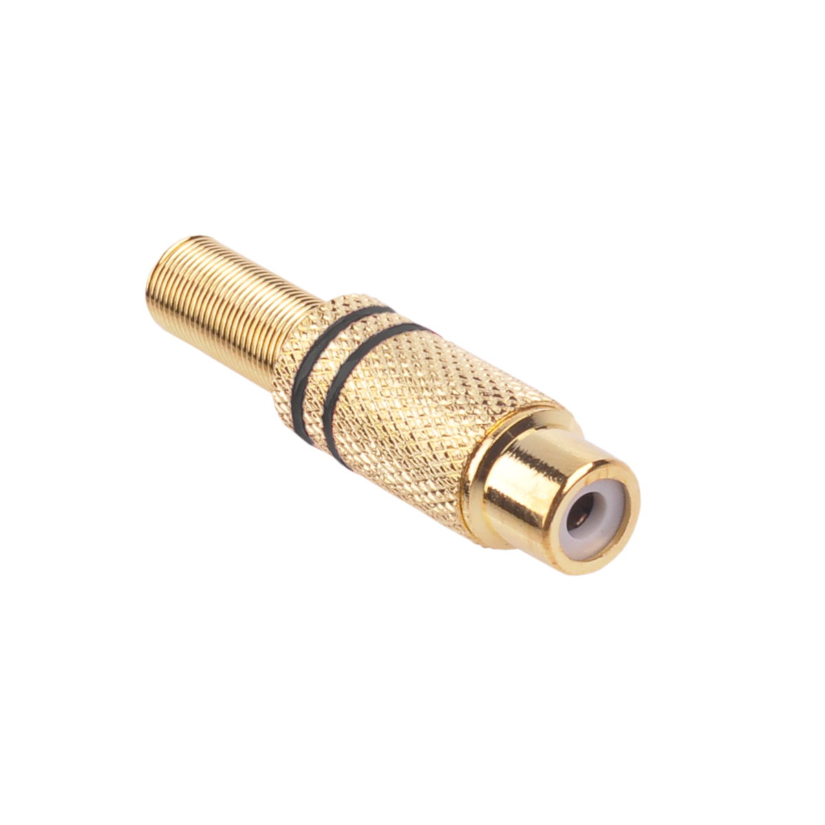 Gniazdo RCA złote 2 paski na kabel czarne