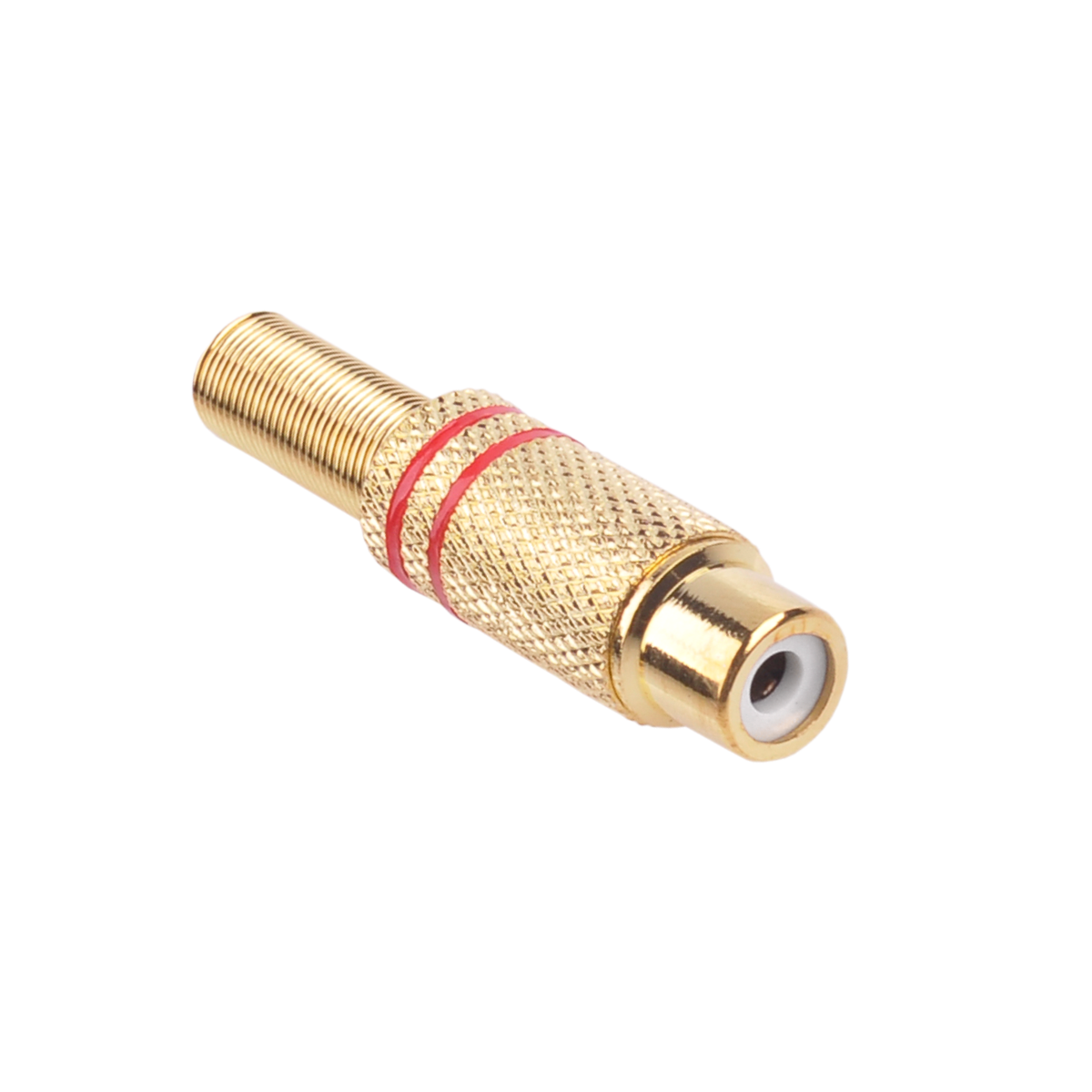 Gniazdo RCA złote 2 paski na kabel czerwone