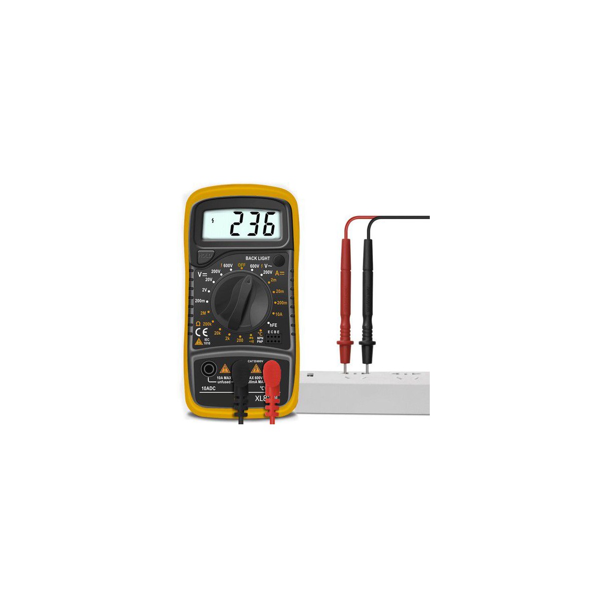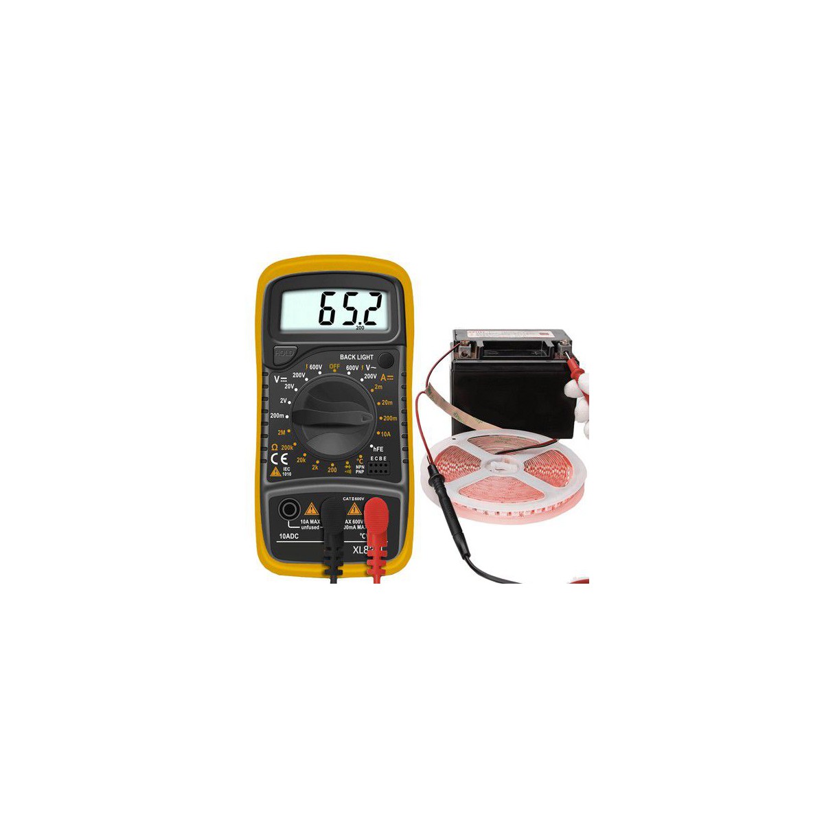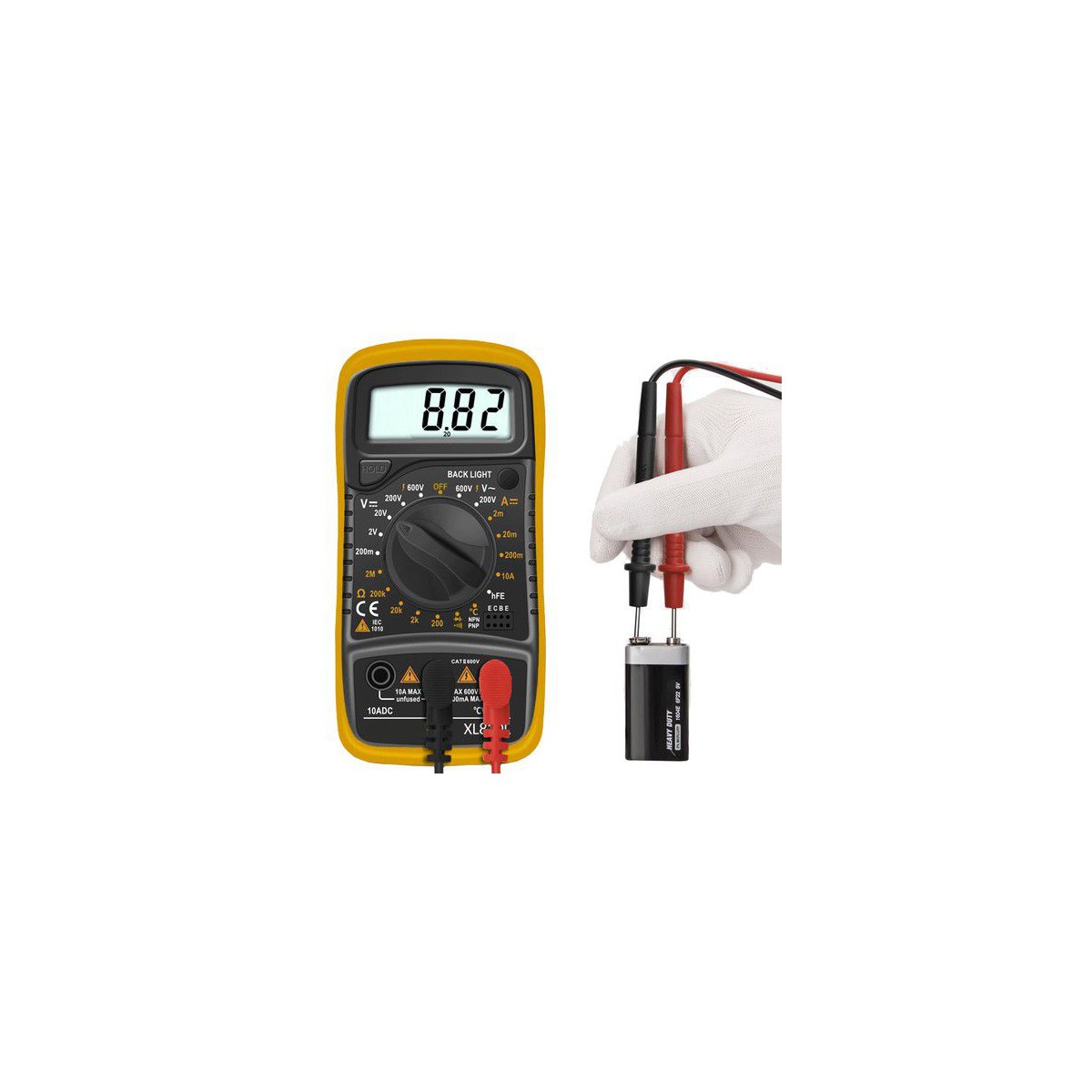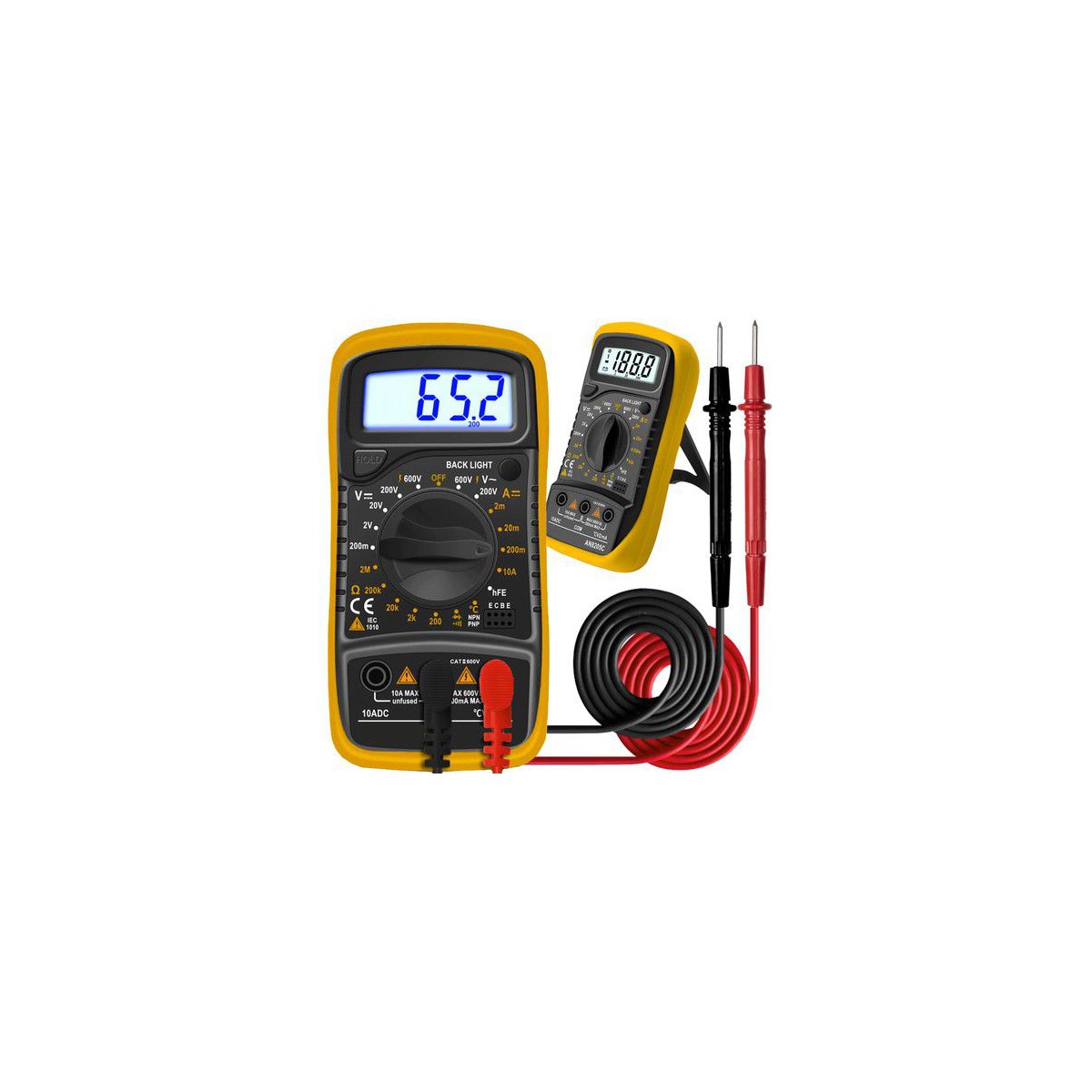 - SPECYFIKACJA - pomiar napięcia zmiennego AC w zakresie 0-750V; pomiar napięcia stałego DC w zakresie 0-1000V; pomiar natężenia prądu stałego DC w zakresie 0-10A; pomiar rezystancji w zakresie 0-2 Ohm; pomiar wzmocnienia tranzystorów hFE; test diod; wskaźnik niskiego poziomu baterii miernika; maksymalny odczyt 1999; sygnalizacja polaryzacji przy pomiarach prądu i napięcia stałego; sygnalizacja przekroczenia zakresu pomiarowego; zasilanie: bateryjne; wymiary: 14x7x3,5 cm; waga: 0,125 kg; waga w opakowaniu: 0,237 kg.