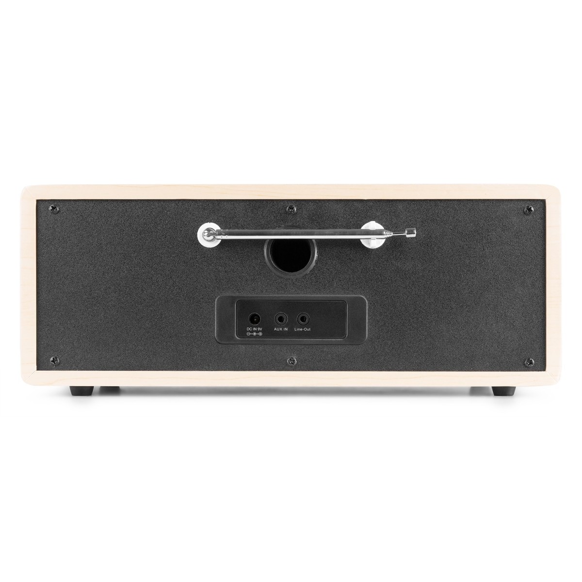 Radio stereo Bari All-in-One w drewnianej obudowie imponuje na pierwszy rzut oka eleganckim, stylowym wyglądem i nowoczesnymi funkcjami.