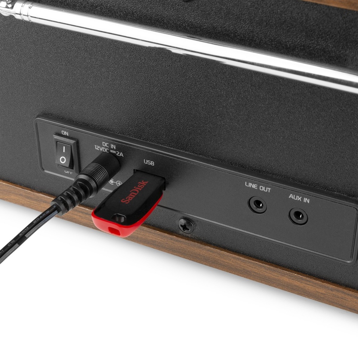 Wyposażony w radio cyfrowe (DAB+) / radio FM, Wi-Fi i radio internetowe oraz odtwarzacz CD.