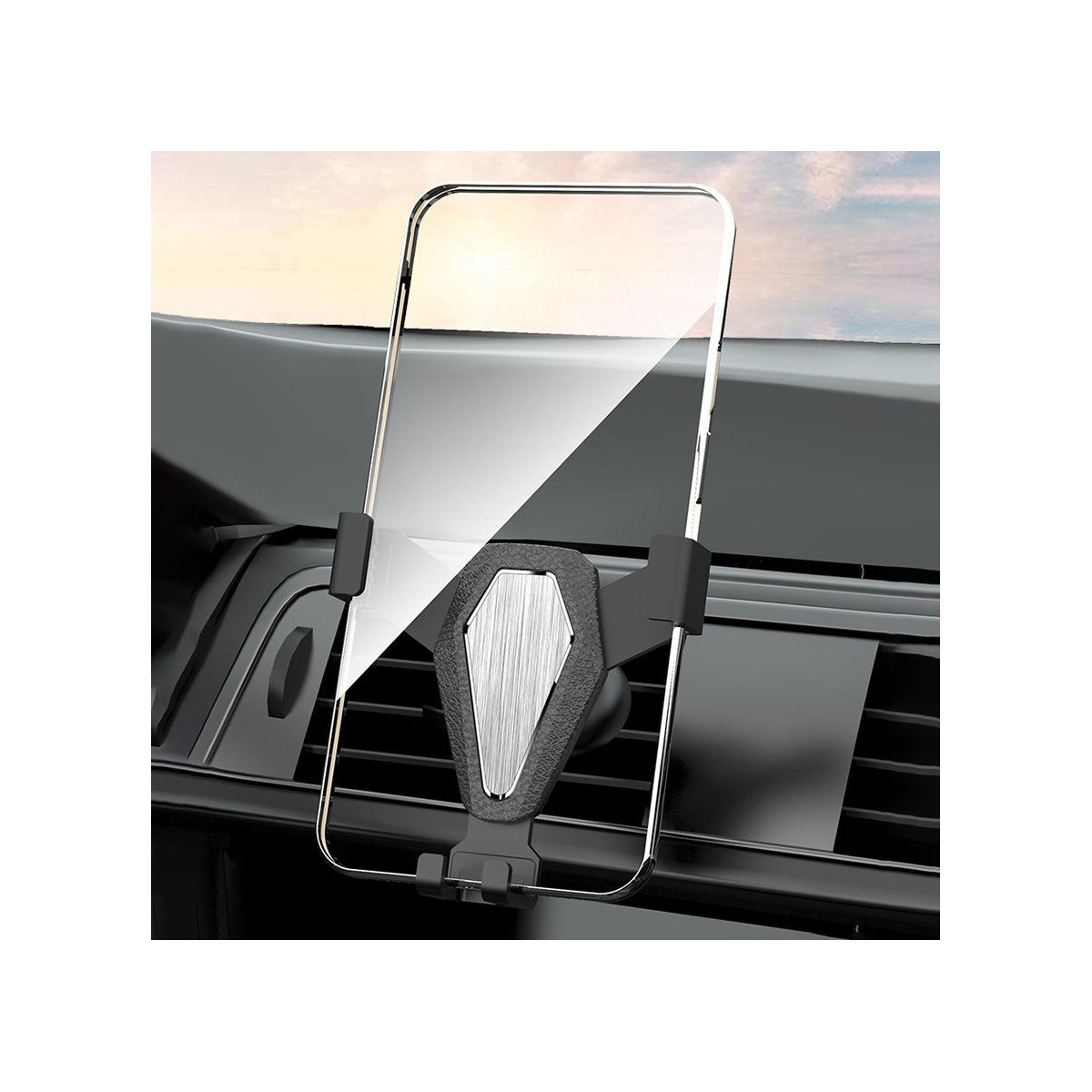 Grawitacyjny uchwyt samochodowy do smartfona na kratkę srebrny (YC07)