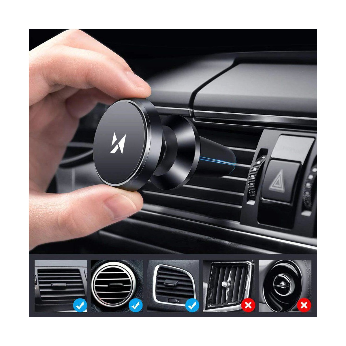 Poznaj niewielki uchwyt magnetyczny do kratki wentylacyjnej Wozinsky WMH-04 o minimalistycznym, stylowym designie. Wykonane z aluminium akcesorium ma wyjątkową trwałość, a silikonowe osłony gwarantują stabilność i bezpieczeństwo zarówno samego gadżetu, jak i telefonu. Magnetyczny uchwyt posiada 4 wbudowane magnesy, duże możliwości regulacji (w tym obrotu o 360 stopni) i metalową płytkę w zestawie. Dzięki pewnemu, magnetycznemu chwytowi gadżet możesz obsłużyć nawet jedną ręką.