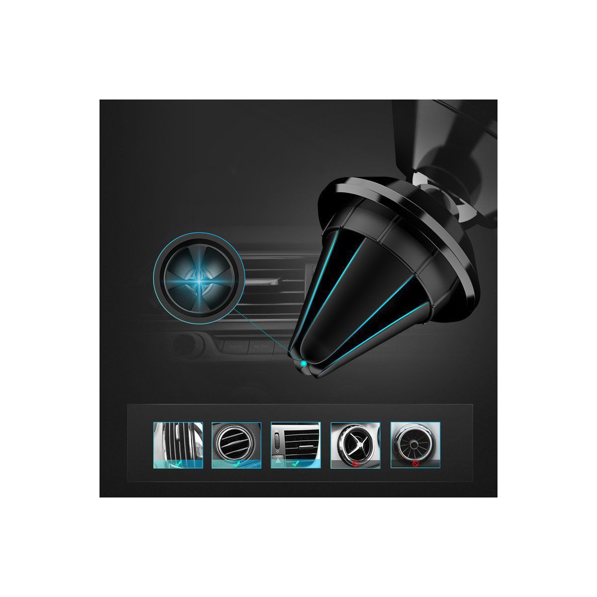 Niezwykle prosty w montażu. Wozinsky WMH-04 przytwierdza się do kratki wentylacyjnej w samochodzie