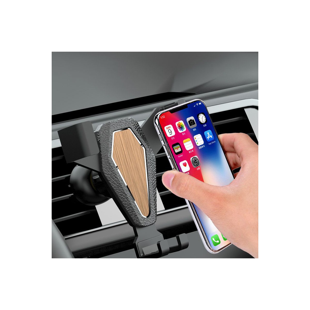 Grawitacyjny uchwyt samochodowy do smartfona na kratkę srebrny