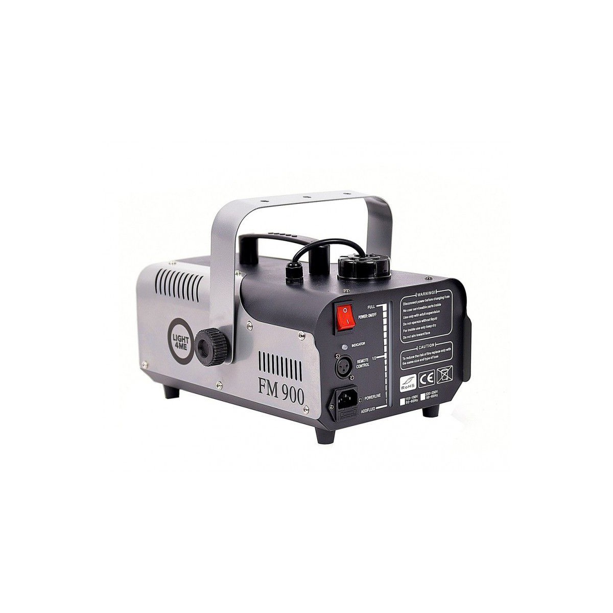 LIGHT4ME FM 900 to kompaktowa i wydajna wytwornica dymu/mgły z bardzo mocną grzałką zapewniającą szybki start urządzenia. Dla większego komfortu pracy FM 900 została wyposażona w piloty - przewodowy na 3m kablu oraz bezprzewodowy. Dzięki temu sprzęt można ustawić w dowolnym i optymalnym miejscu na sali i sterować nim zdalnie. Urządzenie jest bardzo łatwe w obsłudze. Wystarczy je włączyć przyciskiem na tylnej części obudowy, by po chwili cieszyć się z gęstej mgły wydobywającej się z przedniej dyszy.