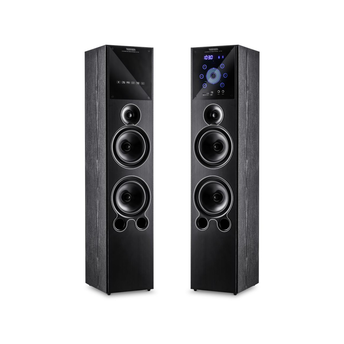 Zestaw kolumn posiada wbudowany wzmacniacz, odtwarzacz USB / SD , BLUETOOTH, tuner FM, wejście sygnału RCA oraz 2 wejścia mikrofonowe.